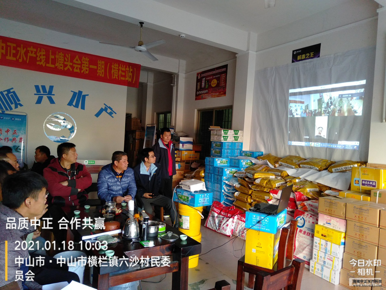 2021年01月18日中正水產(chǎn)第一期線上塘頭會(huì)在中山橫欄鎮(zhèn)順興水產(chǎn)技術(shù)服務(wù)站順利召開。這是中正首次嘗試將傳統(tǒng)的塘頭會(huì)搬上網(wǎng)絡(luò),同時(shí)鏈接南北方養(yǎng)殖戶互相交流心得,傳授養(yǎng)殖經(jīng)驗(yàn)。