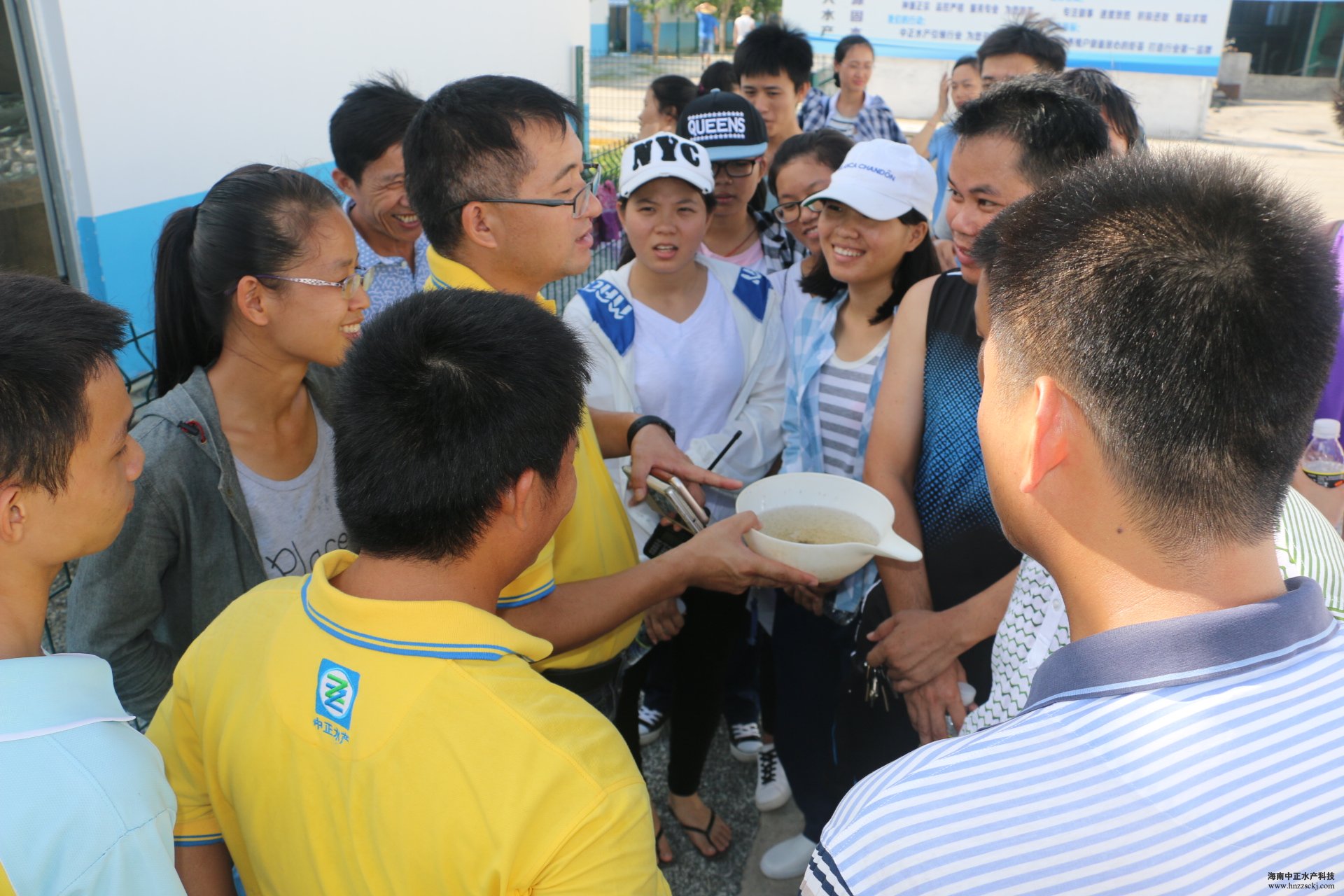 感恩社會(huì)、回饋社會(huì)是我國(guó)中華民族的傳統(tǒng)美德。中正水產(chǎn)雖僅僅剛成立兩周年,時(shí)間雖短,但我們并沒(méi)有忘記感恩社會(huì)、回饋社會(huì)。7月20日下午,由東方市新龍鎮(zhèn)黨委書記邢福磊、新龍鎮(zhèn)黨委副書記鎮(zhèn)長(zhǎng)朱建玲組織了鎮(zhèn)政府相關(guān)部門負(fù)責(zé)人、新龍鎮(zhèn)各村委書記以及20位新龍鎮(zhèn)2016年高考優(yōu)秀學(xué)子和貧困生一起前往海南中正水產(chǎn)科技有限公司,參與由海南中正水產(chǎn)和新龍鎮(zhèn)政府聯(lián)合主辦的愛(ài)心助學(xué)活動(dòng),力助新龍鎮(zhèn)2016年高考優(yōu)秀學(xué)生圓夢(mèng)大學(xué);顒(dòng)開(kāi)始前,中正水產(chǎn)總經(jīng)理王平帶領(lǐng)了他們一起走進(jìn)了藻類生產(chǎn)車間、水處理系統(tǒng)車間、豐年蟲生產(chǎn)車間、育苗生產(chǎn)車間,并給他們?cè)敿?xì)地講解了南美白對(duì)蝦育苗的操作規(guī)范流程,現(xiàn)場(chǎng)氣氛熱烈,洋溢著濃濃的暖意,不斷傳來(lái)熱烈的掌聲。