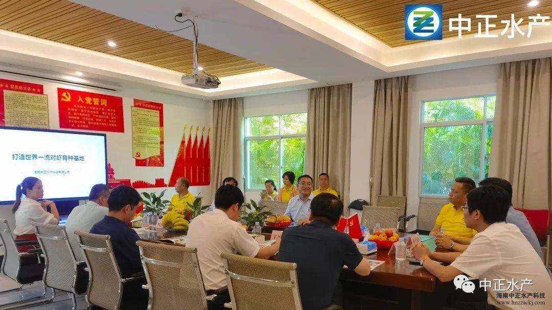 王平副總裁匯報了中正公司近年來的生產(chǎn)經(jīng)營情況,在生物安保防控、生態(tài)育苗、尾水治理等方面取得的成績,重點(diǎn)介紹了中正南美白對蝦良種選育進(jìn)度、對蝦育種中心的建設(shè)情況,以及種業(yè)發(fā)展的未來規(guī)劃。