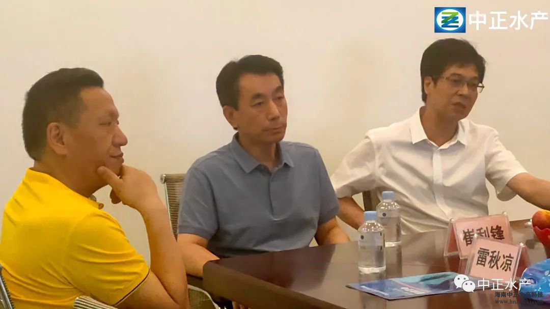 2021年7月31日上午,由全國水產(chǎn)技術(shù)推廣總站崔利鋒站長、海南省農(nóng)業(yè)農(nóng)村廳副廳長劉忠松、全國總站學(xué)會辦公室主任李勝利、總站學(xué)會辦公室工程師王祖峰、省農(nóng)業(yè)農(nóng)村廳水產(chǎn)養(yǎng)殖處處長賓海、省水產(chǎn)品質(zhì)量安全檢測中心主任劉天密、省農(nóng)業(yè)農(nóng)村廳水產(chǎn)養(yǎng)殖處李云組成的調(diào)研組,在市領(lǐng)導(dǎo)的陪同下,蒞臨海南中正水產(chǎn)新龍基地實(shí)地考察調(diào)研。中正水產(chǎn)總裁雷秋涼、副總裁王平、副總經(jīng)理宋永強(qiáng)等主要負(fù)責(zé)人陪同。