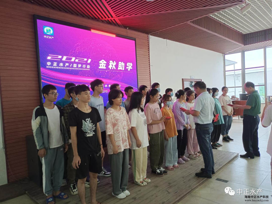 新龍鎮(zhèn)黨委書記吳培榮首先對莘莘學(xué)子取得的優(yōu)異成績表示祝賀,同時感謝中正水產(chǎn)奉獻的愛心,希望社會各界能多一些像中正水產(chǎn)這樣有社會責任心的愛心企業(yè);還提出了兩點期望:一是眼下正是眾多學(xué)子闖過獨木橋,奮力起飛高校追夢的時節(jié),希望受助學(xué)子能努力奮進,早日成為國家需要的棟梁之才,在學(xué)業(yè)有成后能回來建設(shè)家鄉(xiāng),在家鄉(xiāng)創(chuàng)業(yè),同時也要把這份愛心,溫暖傳遞給他人,回饋社會;二是懂得感恩,感恩幫助過自已的人,感恩養(yǎng)育自已的父母。