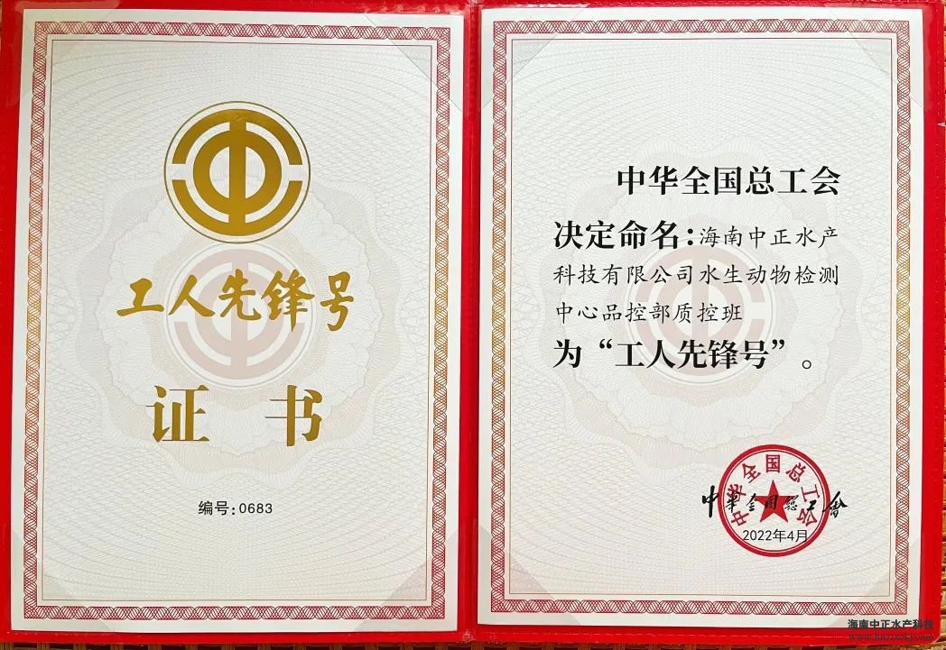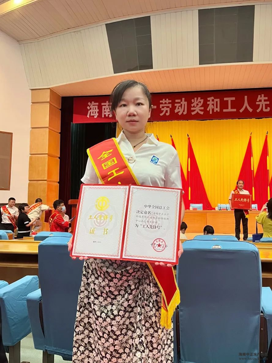 海南中正水產(chǎn)科技有限公司水生動物檢測中心品控部質(zhì)控班榮獲“全國工人先鋒號”,品控部負責人李婷代表團隊參加了此次表彰大會。