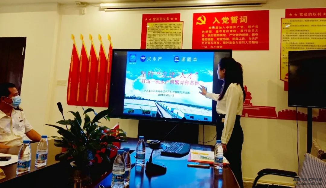 中正水產(chǎn)周博就公司黨建工作與親蝦繁育情況做了匯報(bào),中正黨支部始終堅(jiān)持以黨建為引領(lǐng),發(fā)揮企業(yè)科技等優(yōu)勢(shì),實(shí)施 “黨建+”模式,主動(dòng)擔(dān)當(dāng)企業(yè)社會(huì)責(zé)任,努力打造一流水產(chǎn)南繁種業(yè)基地,為海南自由貿(mào)易港建設(shè)添磚加瓦。