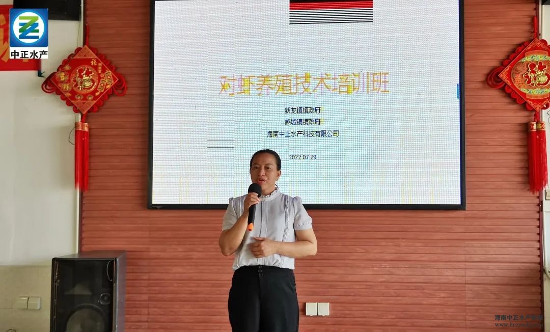 新龍鎮(zhèn)黨委書記符亞仙同志為大家做開班講話。符亞仙在講話中指出此次培訓班是根據(jù)中正水產的產業(yè)優(yōu)勢進行安排,主要向大家培訓對蝦養(yǎng)殖技術。希望能夠切實幫助脫貧戶解決在水產養(yǎng)殖中遇到的實際技術問題。最后,符亞仙同志還感謝中正水產長期以來對鄉(xiāng)村振興工作的大力支持。