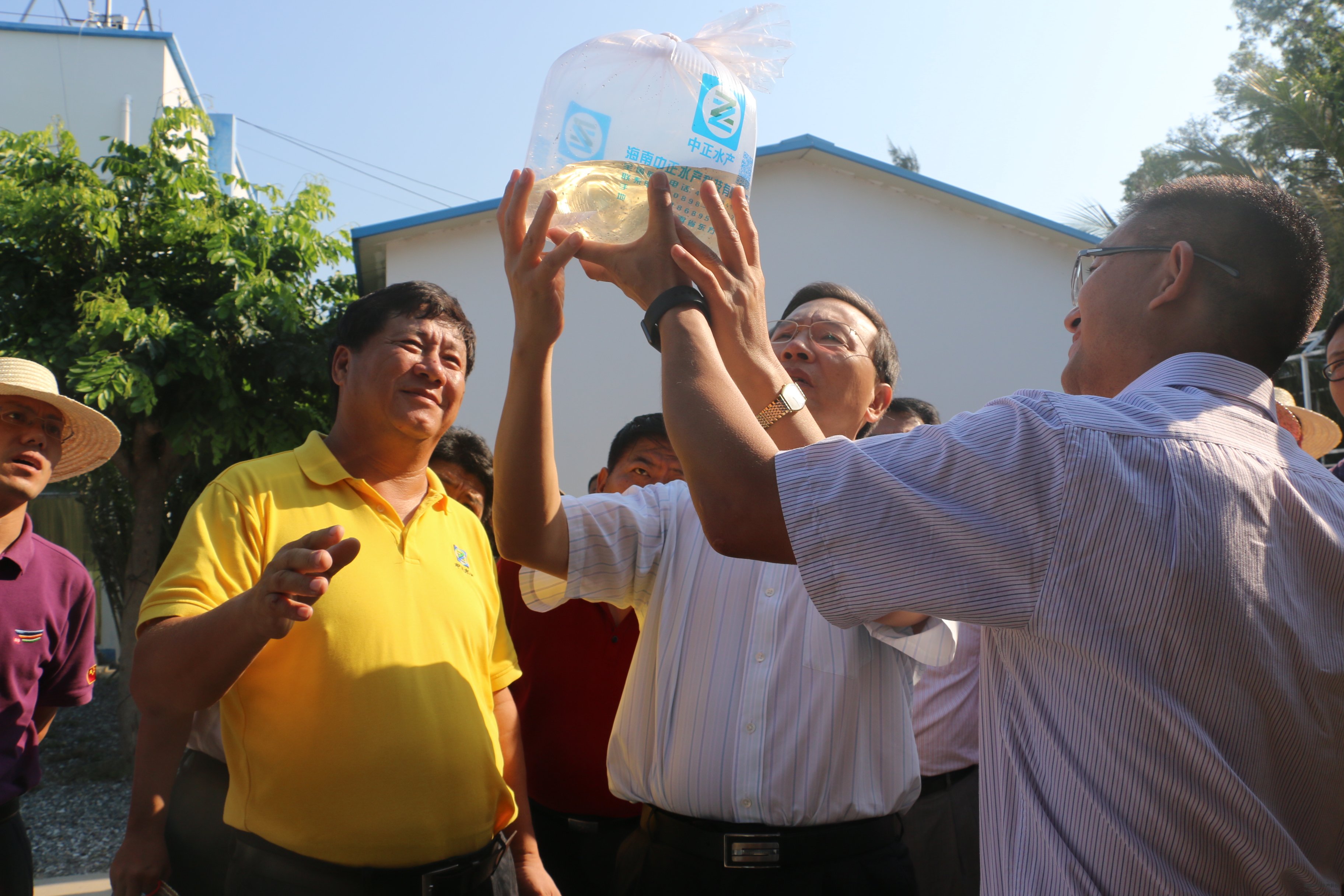 在中正公司新龍基地,李軍一行走進親蝦車間、水處理系統(tǒng)車間、優(yōu)質藻類培育車間,實地的了解到南美白對蝦種苗育苗情況、中正公司對此所開展的工作,以及和客戶的合作經營模式,探討南美白對蝦種苗繁育及銷售中存在的問題和解決之道。李軍鼓勵中正公司與客戶在技術服務、市場營銷等方面開展更加緊密的合作,進一步提高效益,同時強調,中正公司管理層要能根據(jù)行業(yè)現(xiàn)狀因地制宜,因時制宜,要多發(fā)揮自身優(yōu)勢,精心規(guī)劃、從長計議、謀劃長效項目發(fā)展,敢為天下先,做出特色做出自己的品牌,為海南水產行業(yè)爭光。