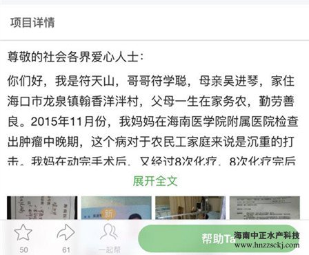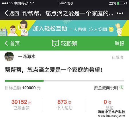 在“輕松籌”平臺(tái)上為其捐款,今天中正公司更是為其發(fā)起了愛心募捐,希望能夠幫助他渡過難關(guān)!