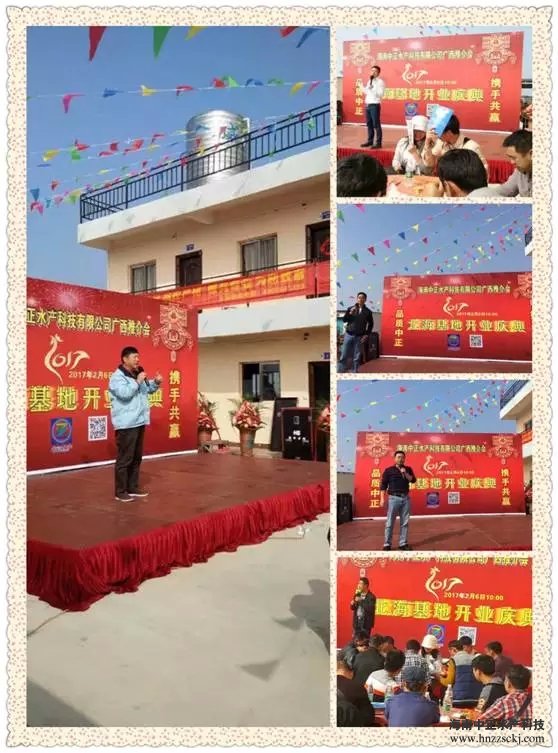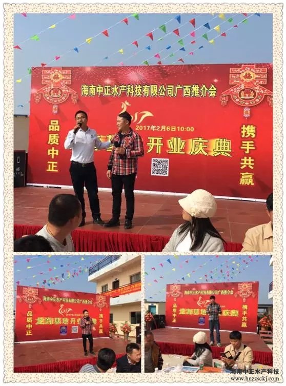 2017年2月6日正月初十陽光明媚,海南中正水產(chǎn)北;貜垷艚Y(jié)彩,正式揭牌開業(yè)! 慶典迎來了兩廣的養(yǎng)殖戶與嘉賓,大家歡聚一堂,共同見證這歷史性的時(shí)刻。